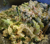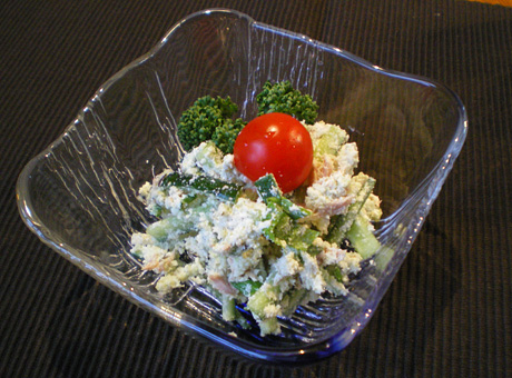 おからサラダは、ポテトサラダのポテトの部分をおからに替えた感じ、と言えばいいでしょうか。ポテトサラダより、やや軽い食感です。火を使わずに出来ますし、何より思い付いた時すぐに作れる簡単さが嬉しい。おからの質が良いのか、パサパサ感やモソモソ感はまったくなく、しっとりしたおいしさです。