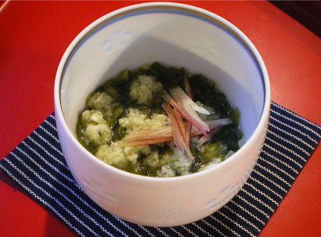 酢の物は、味付けモズクか味付けメカブに、適量のおからを入れて混ぜるだけ。「料理」と呼ぶのもはばかられるような簡単さです。さっぱりした口あたりで、するすると喉を通ります。