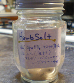 右:東京から移住してきた有機農家の知人から分けてもらったハーブソルトで味付け。塩以外は、その農家で栽培したものです。
