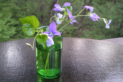 新緑が爆発するような勢いで森をおおい尽くすこの時季、足元には野のすみれが咲き乱れます。わが家の庭にも、濃淡さまざまなすみれがいっぱい。今年は特に豊作なので、例年よりちょっと多めに摘んで、すみれごはんに。食卓がすみれ色に染まりました。