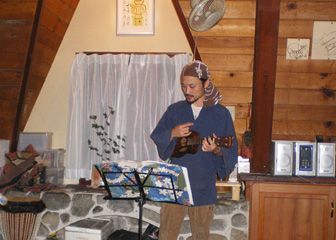 締めは、万華鏡ワークショップで教えてくれたミュージシャンのミニライブ。人見知りして別室に隠れていた家猫も、このときばかりは出てきてキッチンの隅っこで聴いていました。