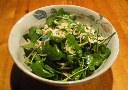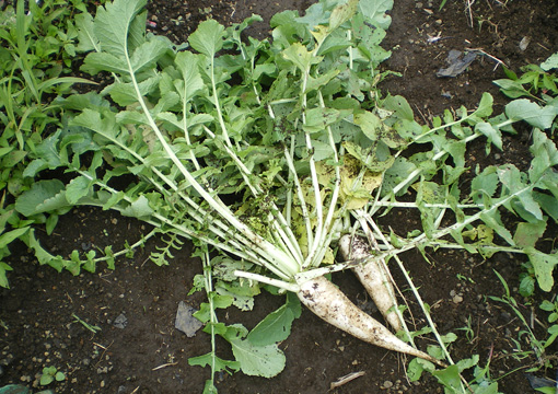 見た目の変化はないものの、足腰が痛くなってきたので、草むしりはおしまい。この日の夕食には、間引きした大根とほうれん草の新鮮サラダが並びました。(一方で、この後3日ばかり筋肉痛に悩まされるというオマケ付き )