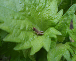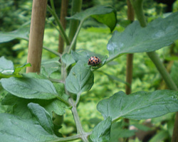 庭の畑で、てんとう虫とバッタの赤ちゃんを見つけました。土の中には、ミミズも。猫の額のように小さな畑ですが、いろんな命が息づいています。