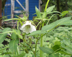 こちらは、手抜きしながらも少しは目が届くので、里の畑に比べるとずっとマシ。きゅうりやトマトは花が咲き、紫蘇やハーブは葉が茂り、ほうれん草は間引きの時期に来ています。