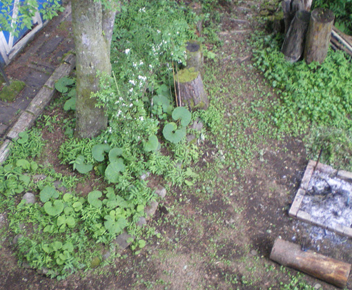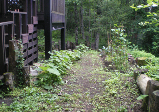 その上、野イチゴや蕗(ふき)のほか、薬草茶用のドクダミ、オオバコなど、「雑草」扱いせずに残しておきたいものも、たくさん。抜けるものの方が少ないのです。