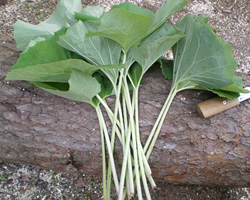 階段下に生えた野生の蕗(ふき)。時々間引きながら「おかず」にします。