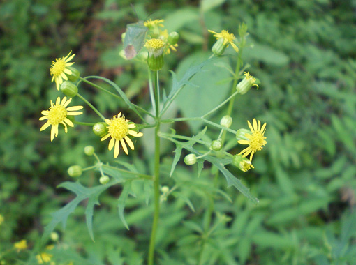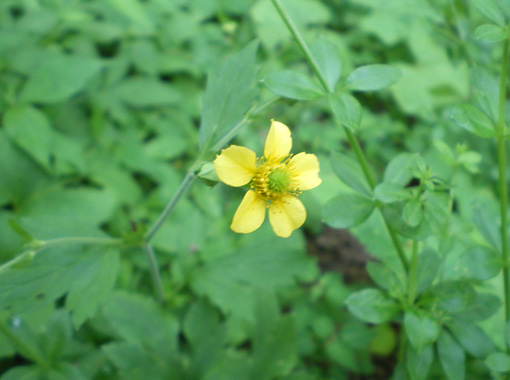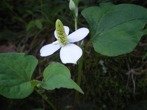 白い十字の花をつけるドクダミ。葉は虫刺されのときの痒み止めに。