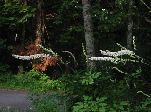 高い標高のせいでしょうか。それとも開花の期間が長いせいでしょうか。この森には季節が混在しているように見えます。春のクローバーも、初夏のツツジも、梅雨時のアジサイも、晩夏のアザミも、同じ時季に咲いているのです。東京暮らしが長かった私は、はじめのうち、この「季節感」になじめず、とまどったものでした。