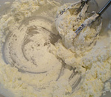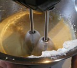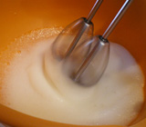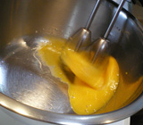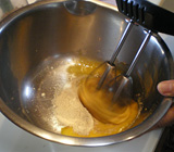 - 2.卵黄に砂糖を加え、さらに泡立てる(写真③)