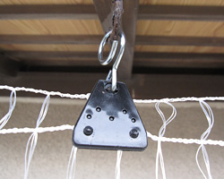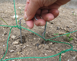 ネットをぴんと張るために、こんな押さえ金物を使いました。野菜のビニールハウス用に売っています。ネットに余裕がある場合にはお試しください。