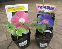 西洋朝顔はピンクの大輪「あけぼの」を選びました。