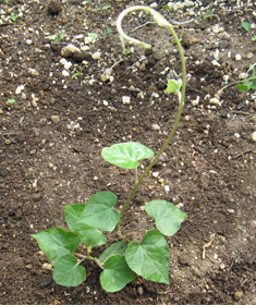 琉球朝顔は宿根で、種はできません。花は西洋朝顔のようにしぼんでしまうことなく1日中咲いているそうです。花の色は青ですが、午後には赤っぽくなるとか。ご近所でも2階の窓までこの琉球朝顔で覆われている家があります。今回も植えるとすぐにツルを伸ばし始め繁殖力は旺盛です。それを見越して充分間隔を開けました。