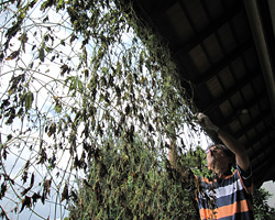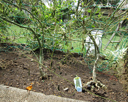 ゴーヤは上の方をはずして、下から引っ張ると割に簡単に外れました。ツルが枯れないうちの方が始末しやすいようです。「アレー、明るくなったあ。でもこの夏はずいぶん助かったよ。」と、この家の主。