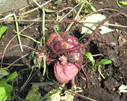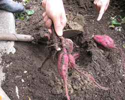 さつま芋はもう少し置いておきたかったのですが、しかたがありません。小さ目ですがさつま芋が収穫できました。テラスライムにも、さつま芋によく似たお芋がついています。