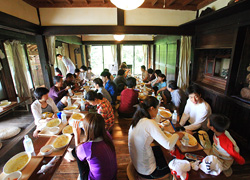 長老に聞くと、機械化されていない頃、お米づくりは集落全体で行い、田植えなど人手が必要な時は隣近所の子供からお年寄りまで家族総出で作業し、手伝いに来てもらった家は「さなぶり」と言ってご馳走を振る舞ったそうです。特に田植えは「ハレの日」で、かつて肉や魚を食べる習慣がほとんどなかった山里の食卓に、この日だけは魚の煮物が出たそうです。鴨川と言っても海から20〜30キロメートル内陸へ入ったここ大山地区では、海方面とは全く異なる食文化を持っていました。車がなかった頃は、20~30キロメートルを移動することは滅多になく、「歩いて行ける範囲」が生活の文化圏だったのでしょう。