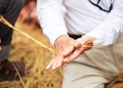 長老の手さばきはさすがで、まるで手からすがい縄がスルスルと生まれるようです。