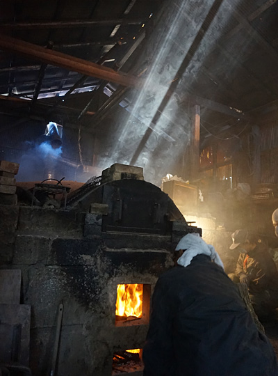 村の長老たち4人が15年間で300回焼いてきた窯ですが、とうとう一昨年のある時、窯の天井にヒビが入り、また長老たちも90才に近づき、これを機に引退しようということになったのです。