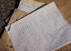 87 才になる長老のこんぴらさんは、毎晩夜の7時に寝ると真夜中の2時に目覚め、新聞広告の白い裏紙に、湧き上がる想いを書きつづっています。