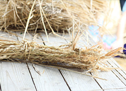すがい縄とは、稲刈り後に稲わらを束ねるための縄のことです。鴨川棚田トラストでは稲刈り後、天日干しにしてお米を乾燥させるので使いますが、一般的に稲刈りはコンバインで刈り取り機械乾燥させるので、天日干しのような手間のかかることはやりません。