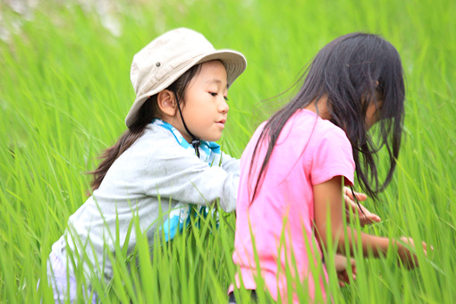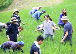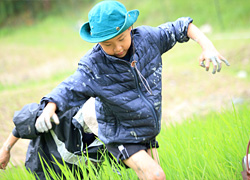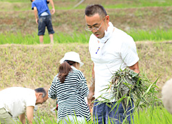 午後からは、田の草とりを行いました。無農薬栽培のおコメ作りにとって欠かせない田の草とりは、一番大変な農作業です。