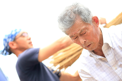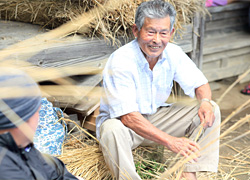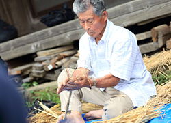 今年もすがい縄づくりの先生に、百姓の師匠である集落最長老の87才のこんぴらさんが来てくれました。87才でもバリバリ現役です!