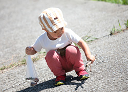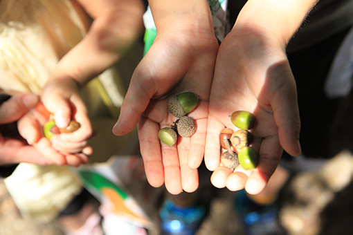 里山はつくり物のテーマパークにはない楽しみがあり、虫を見つけたり、どんぐりを拾ったり、沢山の発見をしながら子どもたちは大喜びで遊んでいます。何もない里山の農村とは、本当に宝物だといつも思います。