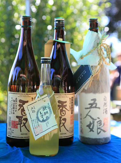 車の運転でない人は寺田本家の自然酒を一杯やりながら、「こころ」の新米ランチを堪能していただきました。東京で和食のお店を開いていた木村さんの料理は、日本酒にとても良く合うのです。