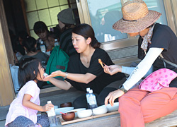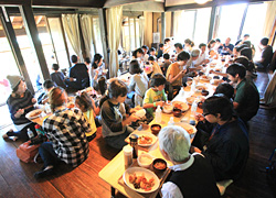 古民家ゆうぎつかでは鴨川の友人たちが出店してくれ、藁珈琲堂の自家焙煎コーヒーや手づくりスイーツ、かまどの火の天然酵母パン、諸国良品でもネット販売しているFUSABUSAのたまちちプリン、「天水棚田でつくる自然酒の会」でコラボレーションしている蔵元寺田本家の自然酒等々、地元の美味しいものが集まりました。