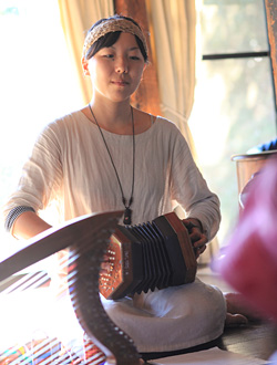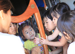 午後の光が差し込む古民家に、リュートやアイリッシュハープ、コンサーティーナのやさしい音色が響き、自然との共生と本当の自由をテーマとした「シュロと鳥」のお話しは深く心に染み入りました。