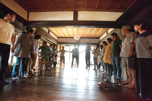 トークイベントでは古民家ゆうぎつかに人が入りきらず、庭にまで人が溢れていましたが、とにかくみんなで手をつなぎ、大きな輪ができました。