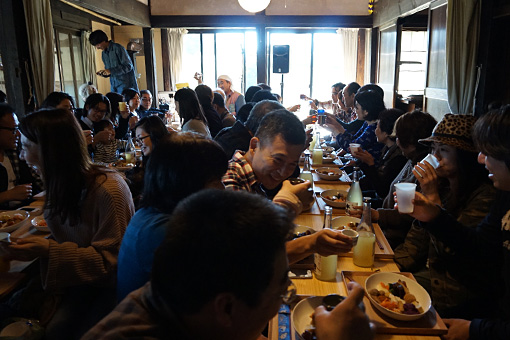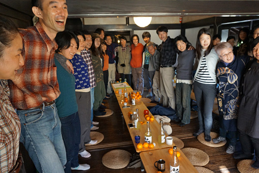 収穫祭で僕らは、お酒、料理、音楽、古民家、里山の自然、そして棚田保全に集まった人々の心と、その場のすべてと響きあい、「楽しく、おいしく、心地よく」発酵しました。