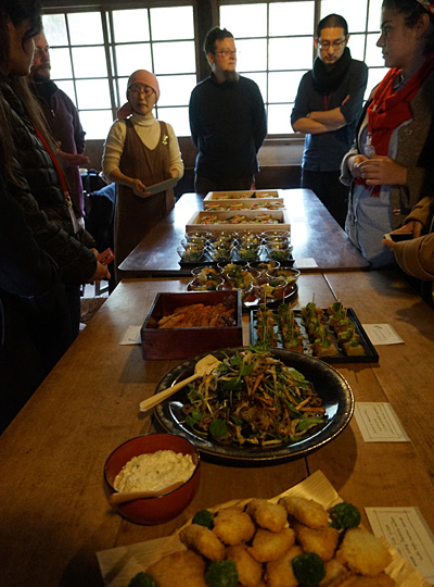 繊細で美しい盛り付けの料理を、みんなおいしい、おいしいと言って食べてくれ、日本の食文化を堪能してくれました。インドからの留学生のベジタリアンの女性もいましたが、美穂さんの料理は完全菜食なので、問題なく喜んで食べて頂きました。