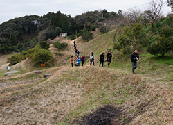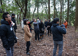 さらに里山の中へ入り、林道を歩き、入会地、雑木林、植林された杉林、荒廃する山林、獣よけの電気柵、耕作放棄地などを見て回り、現在抱える問題も見てもらいました。