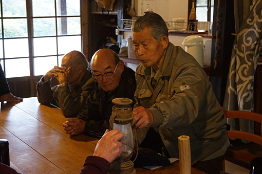 里山から古民家ゆうぎつかへ戻ると、長老たち一人ひとりにお話しして頂きました。