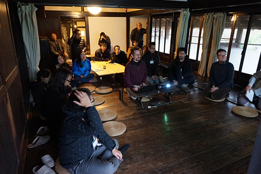 学生たちが到着すると僕らはお互い自己紹介をし、さっそく彼らはハーバード大で調べてきた釜沼北集落や鴨川市について発表してくれました。