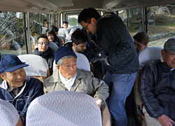 昼食後はバスに乗って大山千枚田、里山デザインファクトリー、ハッカーファームの研究所に見学へ行きました。