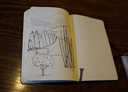 その後、再び釜沼北集落へ戻り、最後は学生たちに古民家ゆうぎつか及び里山周辺を自由に観察して関心のあるモノをスケッチし、それぞれ感じたことをシェアしました。