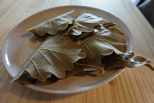 食材はほとんど地元の旬のもので、お米は地元の長狭米、醤油や味噌は僕の手づくり、柏餅に使っている柏の葉とよもぎは、しろうべいさんの庭にあったものです。