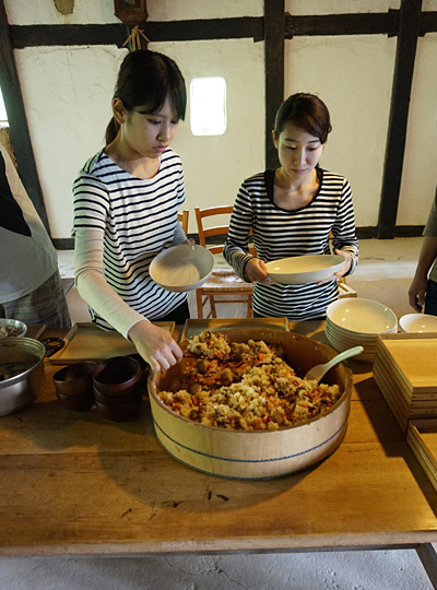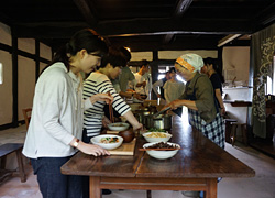 昼食は、集落の料理上手なおばあちゃん「しろうべい」さんがつくってくれました。