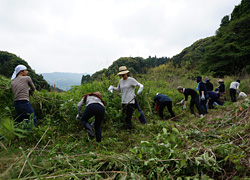山奥の藪を鎌やノコギリを使ってコツコツと手で開墾し、再生していくことは、たとえ一人ひとりの力は小さくても人と人が協力すれば、「不可能に思えることも可能になる」のだという「人間の創造力」と「達成感」を体験して欲しいと思っています。