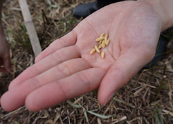 開墾した土地へは実験的に、ネリカ米の種もみを植えました。ネリカ米はアフリカの食糧危機を救うために開発された干ばつに強い陸稲です。一部は、福岡式自然農法で蒔きました。さあ、どうなるでしょうか、楽しみです。