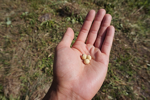 またマメ科の植物は根に根粒菌を持ち、それが空気中の窒素を地中に固定化する働きがあるので、田んぼに大豆を植えることは、稲に肥料も与えることになりました。