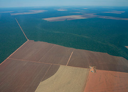 全世界で大豆の生産量はこの50年で10倍に増え、大豆生産の93%をブラジル、米国、アルゼンチン、中国、インド、パラグアイのわずか6カ国の大規模農業で生産し、そのため森林伐採が驚異的なスピードで進み、深刻な環境破壊を招いています。大豆の生産拡大が続いている要因は家畜用飼料、大豆油(多くの加工食品や生活品などにも利用)、バイオ燃料などですが、最大の要因は食肉消費の増大にあり、世界の大豆消費量の4分の3は家畜用飼料です。そして、経済成長する途上国や新興国の食肉消費は増え続け、今後も急増していくと言われています。去年、ブラジル・アマゾンのカヤポ族の大長老ラオーニが来日した時、その現状について伝えてくれた通り、増え続ける大豆の需要を満たすために、アマゾンの森林が破壊され、先住民は土地を奪われています。豊かな国の人々の欲望と経済成長を支えるために、地球の裏側では破壊と収奪が終わりません。大豆から悩ましい現代文明の光と影を垣間見ることができます。