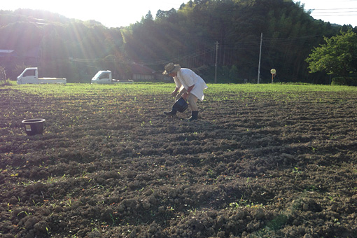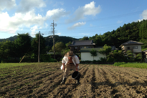 なので、僕と長老のこんぴらさんと良品計画のスタッフと一緒に、再度大豆の種を蒔き直しました。こんぴらさんは自分の畑でもないのに、集落がキレイになるからと言って、ありがたいことにいつも手伝ってくれるのです。