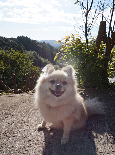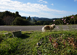 ルナはつながれておらず、自由に庭や家を出入りして、里山でのびのびと暮らしています。