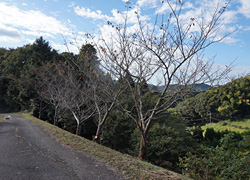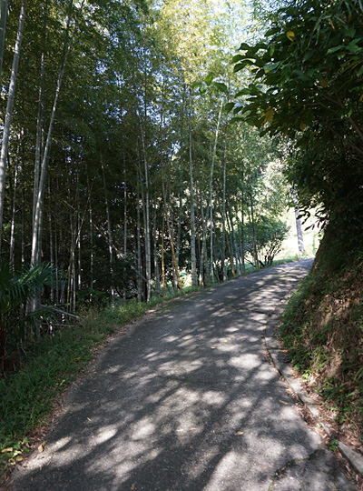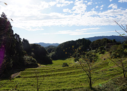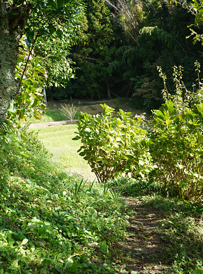 竹林を通りぬけ、山桜が並ぶ道へ出て、おとなりの小平田さんの奥さんが手入れをしている花壇を横切り、棚田へと歩いて行きます。