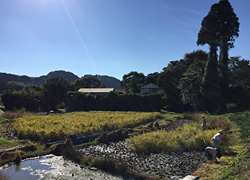 僕と同じ頃に家族とともに鴨川へ移住したたけちゃんは、半農半X(植木屋&サーファー&ジャンベドラマー)のライフスタイルを送り、自給用のお米を不耕起栽培で育てています。