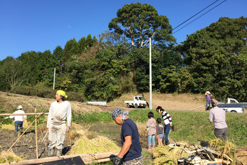 先日、あわマネー会員のたけちゃんの稲刈りを手伝っている時のことです。