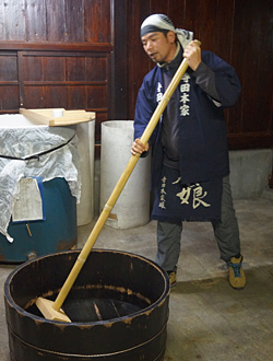 寺田本家は神崎神社の鎮守の森から湧く井戸水と、地元の有機農家が育てた無農薬米を使い、稲穂につく稲麹を培養し、伝統的な生酛造りで、蔵人たちは仕事唄を歌いながら生命力あふれる自然酒を仕込んでいます。