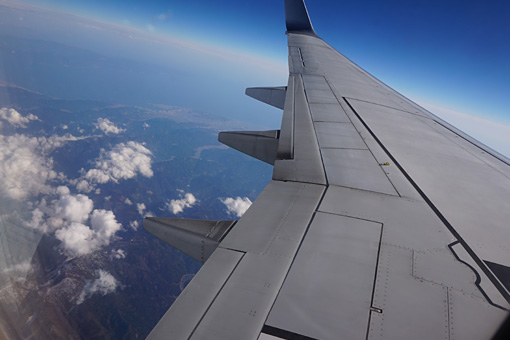 帰りの飛行機の窓から日本列島を眺めると、森と山と田んぼと海が見えました。